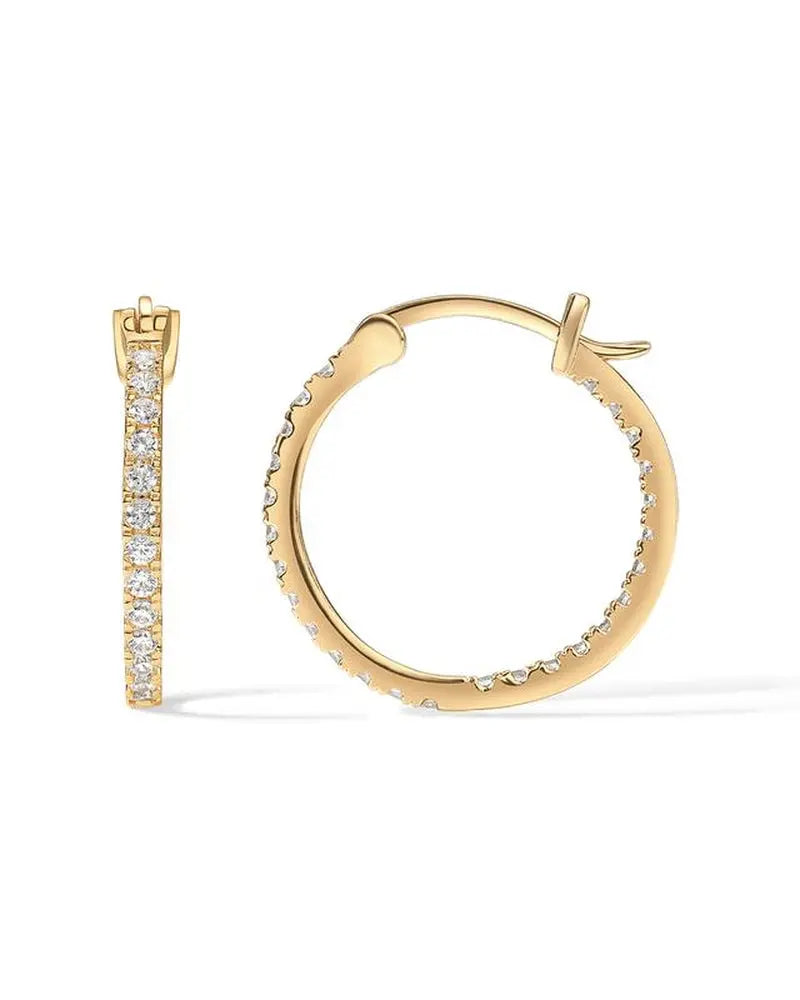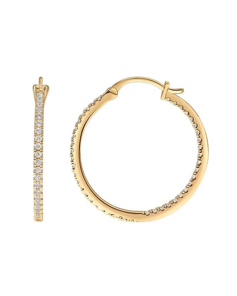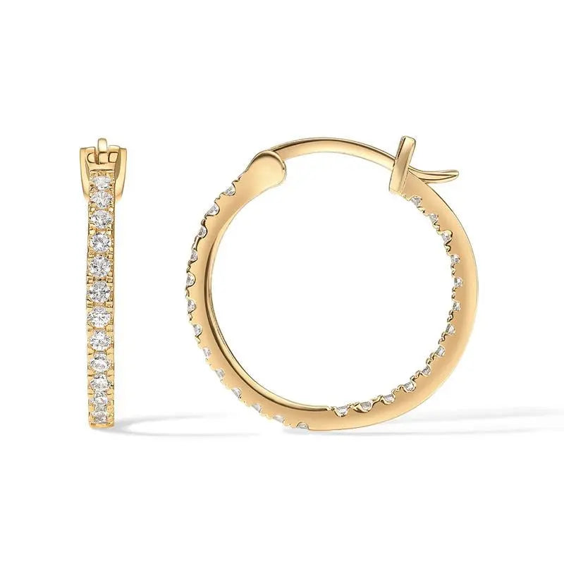 Crafted from high-quality 925 sterling silver and coated with a luxurious 14K gold plating, these earrings are not only beautiful but also durable. The secure setting of the cubic zirconia stones ensures that they remain a timeless addition to your jewelry collection. Available in three sizes—15 millimeters, 20 millimeters, and 30 millimeters—these earrings can be chosen to suit your personal style and preference. Elevate your jewelry game with these versatile hoop earrings that seamlessly transition from day to night.