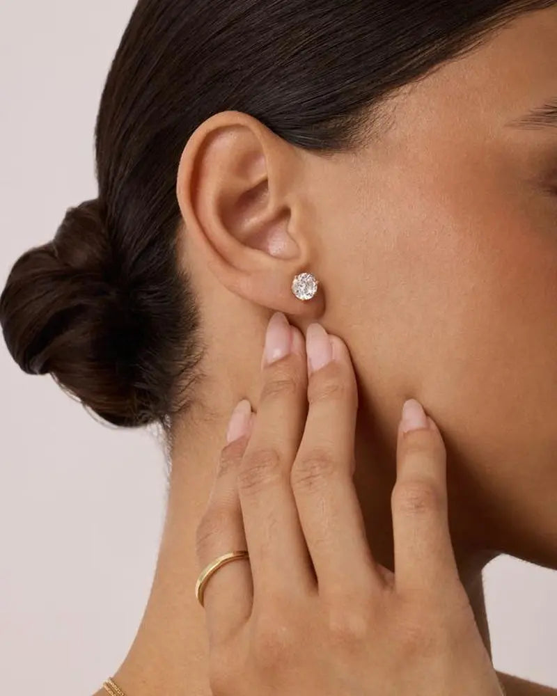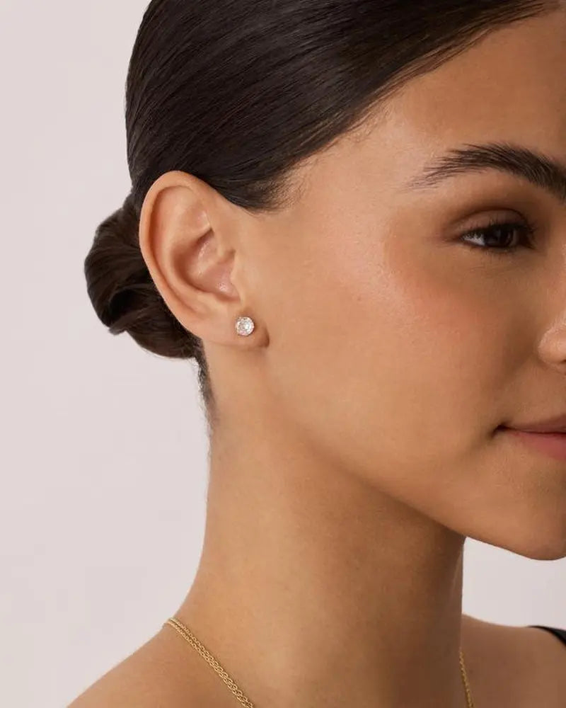 PAVOI 14K Gold Plated Sterling Silver Cubic Zirconia Stud Earrings for Women - Elegant Simulated Diamond CZ Earrings