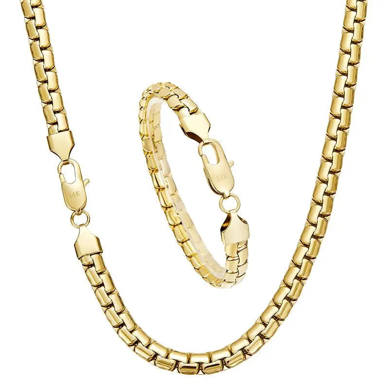 ✨ The 14K Gold-Plated Cuban Necklace and Bracelet Set is a stunning embodiment of vintage elegance, making it the perfect accessory for both men and women. Available in lengths of 18, 20, or 24 inches, this versatile set can be worn individually or together to enhance any outfit. Crafted with high-quality stainless steel and featuring anti-rust technology, this jewelry set not only retains its shine but also ensures durability, making it an excellent choice for daily wear or special occasions. Whether you're dressing up for a festive gathering or adding flair to your everyday attire, this set is sure to impress.