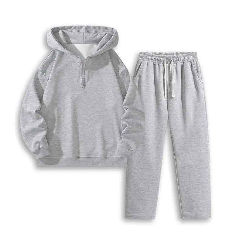 Order your stylish gray half-zip hoodie set today and enjoy the perfect blend of comfort, style, and versatility for every occasion!